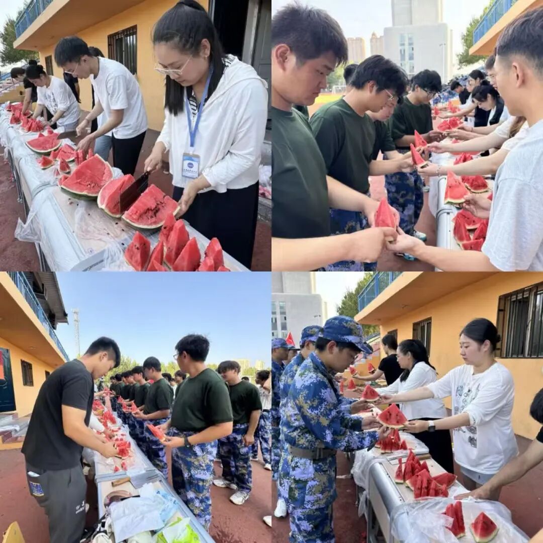 活动现场,学院领导、辅导员和学生助理细心完成西瓜的清洗、切块和分发工作,将一份份清凉与甘甜递到新生手中。这份夏日中的特别关怀,不仅缓解了军训的疲惫,更成为一次真挚温暖的情感互动。它超越了物质层面的慰藉,进一步筑牢了学院与新生之间的情感纽带,让学子们在体验纪律严明的军训生活的同时,深刻感受到学院独特的人文氛围与育人情怀。