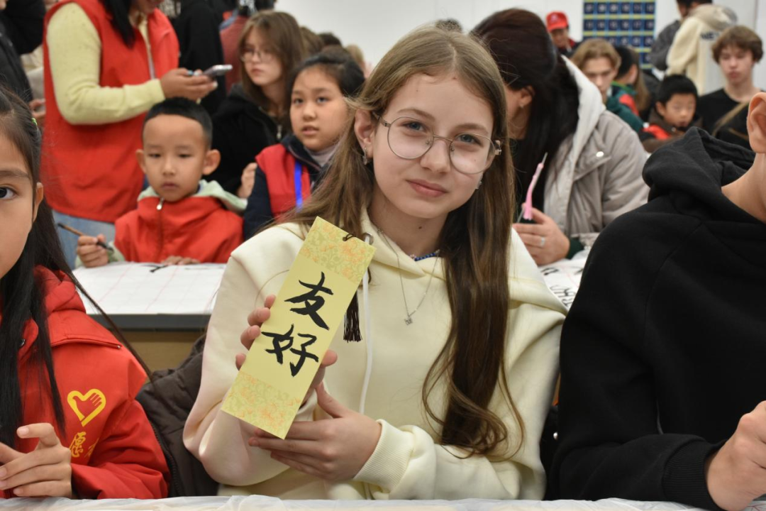 随后,在墨香氤氲的氛围中,书法社学子与俄罗斯青年执手结对,倾囊相授从笔法到结构的精妙;俄罗斯友人也从初时的生涩,渐至挥洒的佳境。这已不仅是一堂书法课,更是两大文明间一次亲切的握手。笔墨流转,会心一笑间隔阂尽散;一笔一画,流淌的不只是东方神韵,更是中俄友谊源远流长、在新时代青年心中生根发芽的动人篇章。