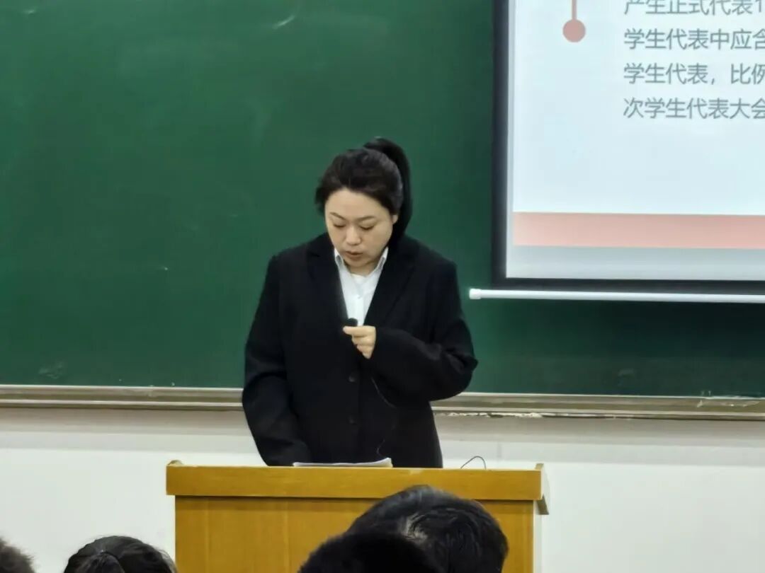 同时,大会以差额选举方式组建了新一届学生会主席团及学生副书记。在学院党总支和团总支的统筹指导下,经过充分的民主协商与评议,最终从2302401宁硕、2302412马岚、2302402齐宏杰、2302401班张彩强、2302402班吴为宇五位候选人中选举产生三位主席团成员,在2302601李雨彤、2302412刘洋两位候选人中选出一位学生副书记。这一竞争性选举机制,为学生会领导集体注入了新的活力。随后,大会严格履行民主程序,选举产生哈尔滨华德学院第七次学生代表大会智能制造工程学院正式代表88名。该名额占学院学生总人数的2.5%,充分体现了选举过程的民主性、广泛性和代表性,展现了学院对学生民主参与权利的高度重视。