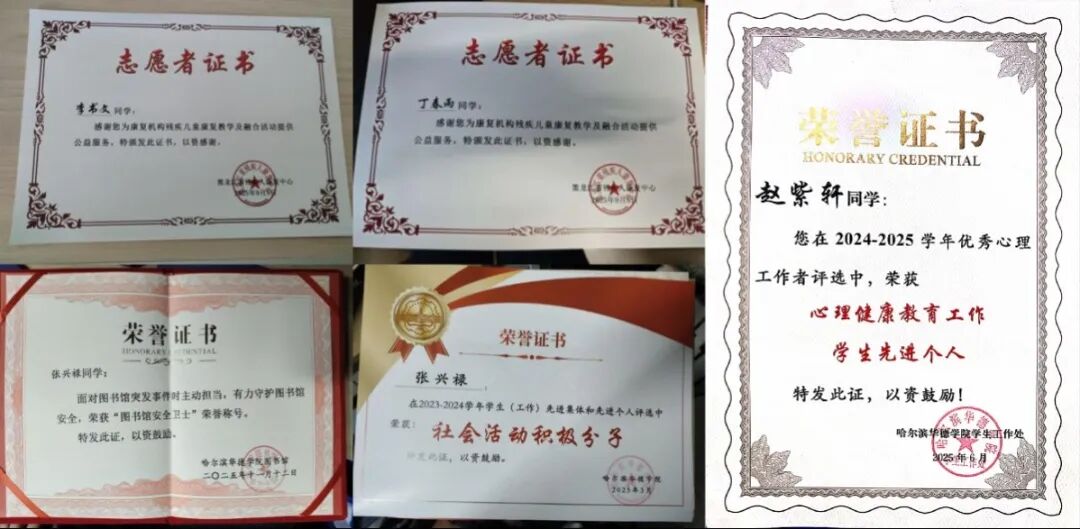 4.志愿活动类:班级同学积极投身志愿实践,荣获各项志愿者证书及先进个人证书,以行动诠释担当之美。