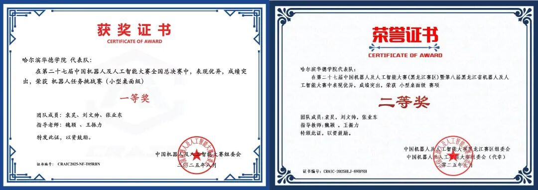 初心如磐,笃行致远。自踏入机器人工程专业的殿堂,“智驱未来,械动乾坤”便成为他的信念坐标,将对智能硬件与算法逻辑的执着,融入每一次代码调试、每一轮机器人系统搭建之中。课堂上深耕机器人运动学、自动控制原理等核心理论,实验室里专注于机械臂标定、机器人路径规划、智能传感系统集成等实践操作,在拆装修复、程序优化、性能测试的反复打磨中锤炼硬功。这份“不破不立”的钻研劲,让专业成长之路愈发坚实:连续斩获4次校级奖学金,凭借机器人领域的科研实践与竞赛突破,成功斩获国家奖学金;在各类机器人创新赛事中稳步进阶——从校级机器人创意赛崭露头角,到省级中国机器人及智能制造大赛斩获二等奖,再到中国机器人及智能制造大赛全国总决赛一等奖,多份荣誉背后,他始终坚信“优秀的机器人设计,既要精准响应指令、稳定执行任务,更要在人机协同中彰显智能的温度与工程的匠心”。这份对机器人领域的热爱与坚守,让他在深耕专业中沉淀定力,在突破创新中积蓄锐气。