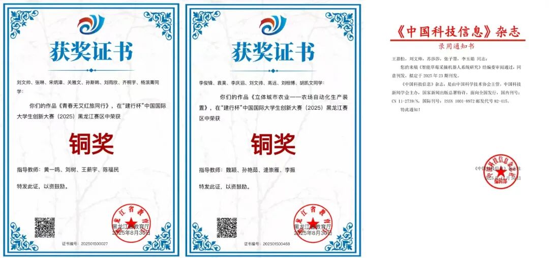 他是跨学科“创新探索者”——秉持敢闯敢创、笃行求索的科研态度,立足机器人工程、人工智能与自动化控制的交叉领域深耕细研,全力争当跨学科创新探索者,多次牵头领导、深度参与中国大学生创新创业大赛项目,在实战中打磨创新思维、锤炼科研能力。针对农业智能化发展需求,他潜心钻研“智能草莓采摘机器人系统研究”项目,聚焦机器视觉识别、精准定位等核心技术攻坚克难,反复调试优化系统方案,最终实现机器人快、准、稳的高效采摘作业,相关研究成果凭借创新性与实用性,成功刊登于《中国科技信息》杂志,以硬核科研实绩展现了跨学科融合的创新潜力,彰显了新时代工科青年的科研担当。