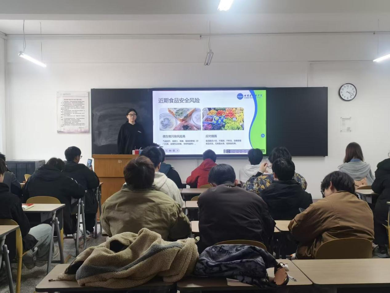 活动以班级为单位,通过案例讲解、视频展播、互动问答等多种形式有序开展。各班级团支书围绕食品标签识别、常见食品安全误区、校园餐饮消费注意事项等内容进行系统讲解,并结合真实案例剖析了“三无”食品、过期食品及不合理饮食结构的潜在危害,引导学生增强辨识能力与防范意识。