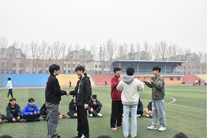 紧接着,“桃花朵朵开”游戏将现场氛围推向高潮。主持人随机喊出“桃花朵朵开,开几朵”,成员们迅速反应、抱团组队,每一次数字喊出都伴随着全场的欢呼与奔跑,大家在快速组队的过程中,不仅锻炼了反应能力,更在轻松的互动中拉近了彼此的距离,操场上满是欢声笑语,青春活力满满。