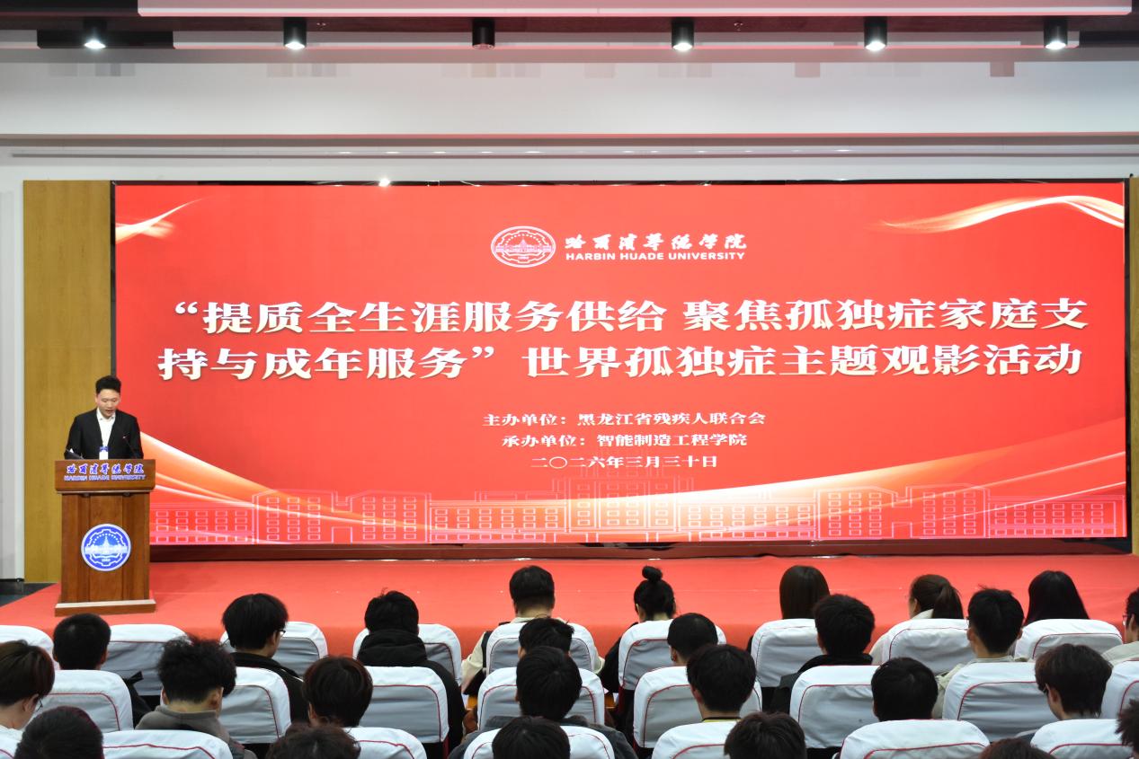 为响应黑龙江省残疾人康复中心关爱孤独症群体的号召,践行扶残助残的人文关怀,引导青年学生走近孤独症群体、消融心与心之间的隔阂,由黑龙江省残疾人康复中心主办,智能制造工程学院承办的“辉映星光,与爱相拥”世界孤独症日主题观影活动,作为学院特色晚自习的重要实践环节,于3月30日在图书馆报告厅举行。本次活动将公益关怀与特色晚自习深度融合,以光影为媒介,为青年学子打造了一堂有温度、有深度的思政实践课。