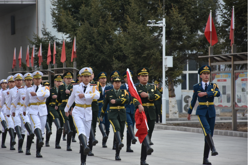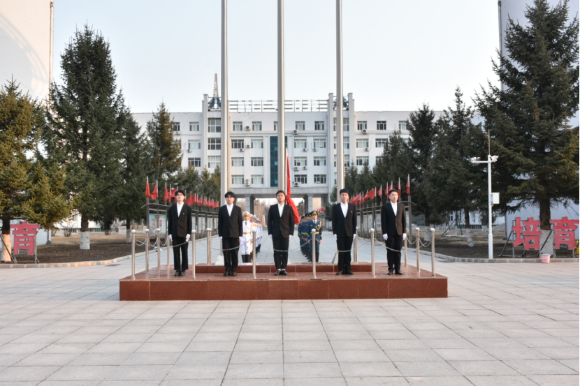 破晓的光芒划破天际,国旗护卫队踏着晨光,迈着铿锵有力的步伐护送国旗入场。五星红旗在他们肩上映着朝阳,熠熠生辉。随着《义勇军进行曲》庄严奏响,全体师生肃立注目,目光追随着缓缓升起的国旗,在庄严的仪式中凝聚着对祖国的深切热爱与崇高敬意。