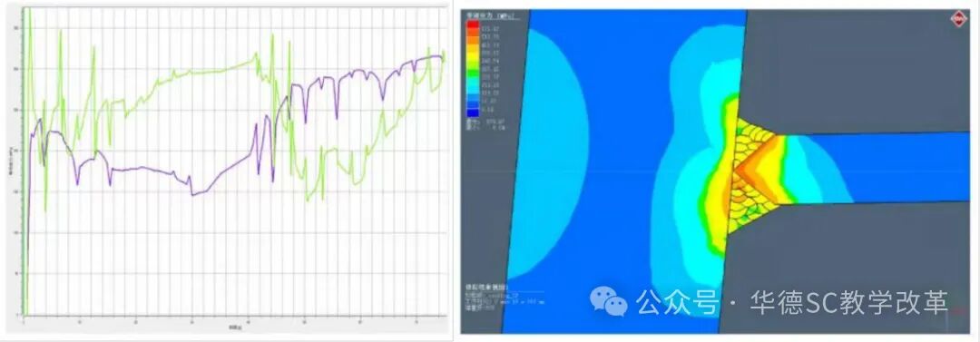 针对“海洋石油201”船用厚板的多丝埋弧焊需求,学生建立约束方式和支撑平台,设计焊接顺序、计算预热温度(如图5、图6所示),并利用有限元软件分析残余应力分布(如图7、图8所示)。通过与企业工程师的远程连线,学生实时调整方案,体验“设计-验证-优化”的完整工程流程。