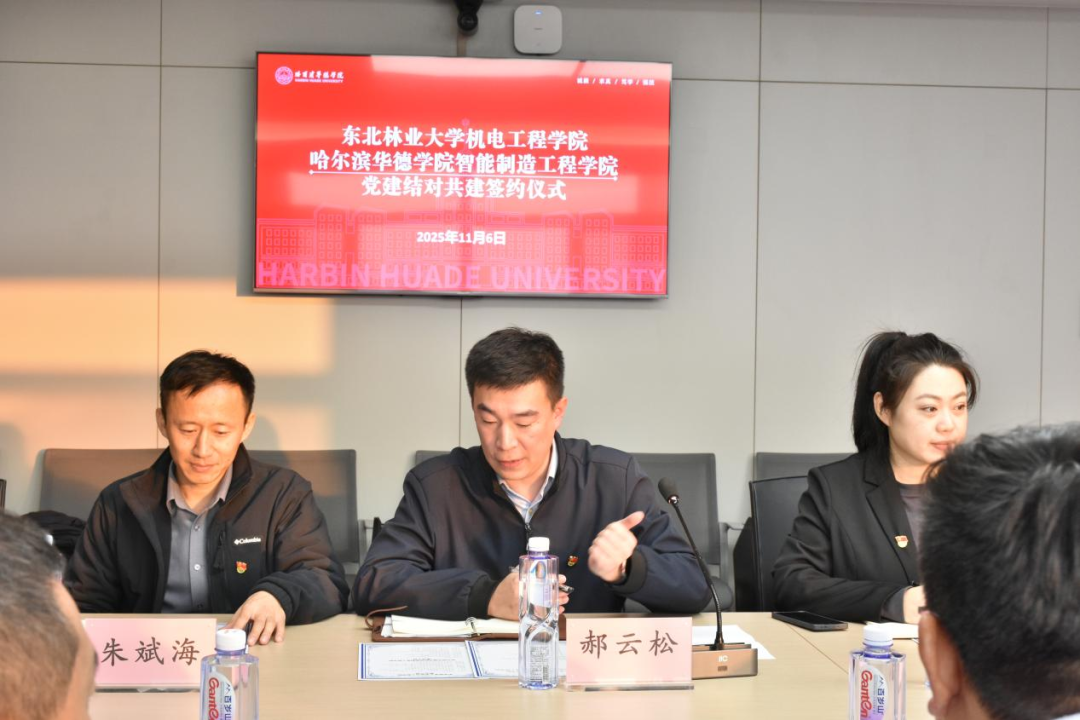 11月6日下午,我校智能制造工程学院与东北林业大学机电工程学院党建结对共建签约仪式在我校教师厅举行。智能制造工程学院院长朱斌海,党总支书记郝云松,党总支副书记王振力,东北林业大学机电工程学院党委书记王佳彤,党委副书记兼副院长、纪委书记、正处级组织员郑燕,双方学院党支部书记及师生党员代表共同出席仪式。