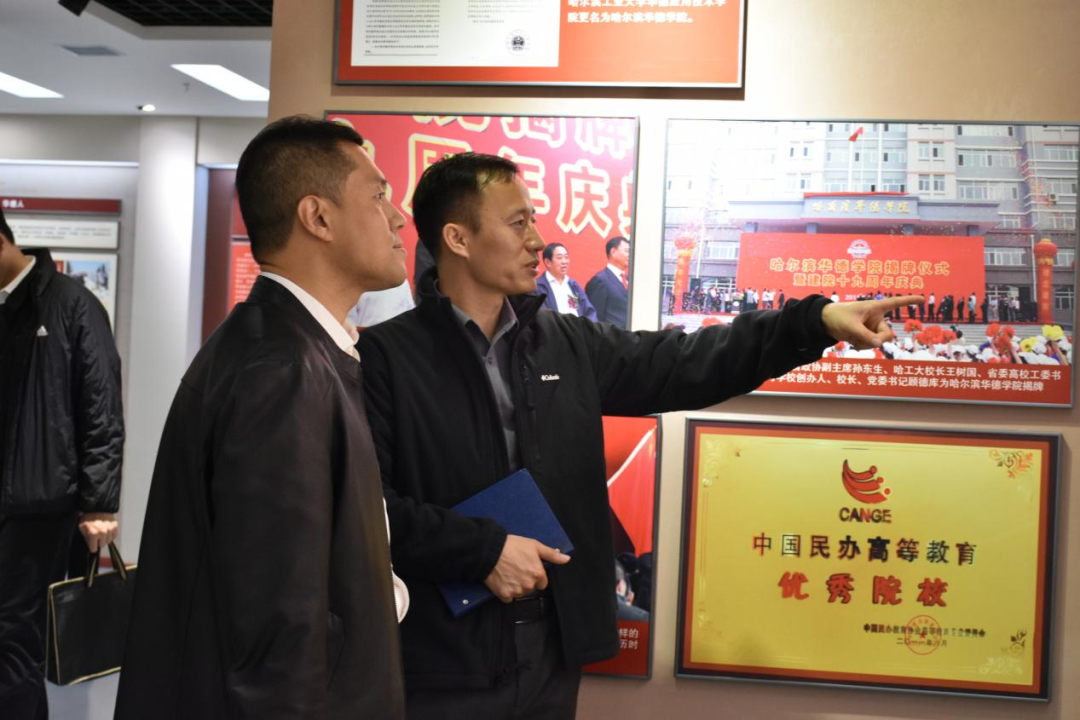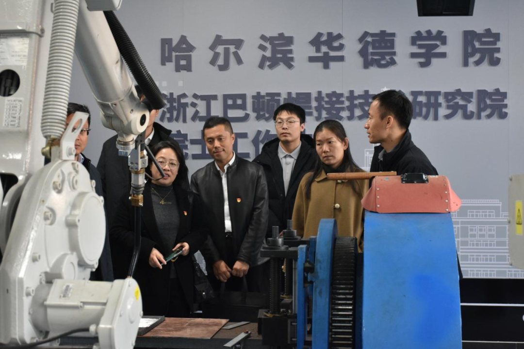 签约仪式前,东北林业大学机电工程学院一行在智能制造工程学院院长朱斌海、副院长王振力的陪同下,先后参观了我校校园文化馆与智能制造工程学院实践教学中心,详细介绍了哈尔滨华德学院的办学历史、发展历程、校园文化建设成果以及在应用型人才培养、产教融合等领域取得的成效,为双方后续党建及学科领域深度合作奠定了良好基础。