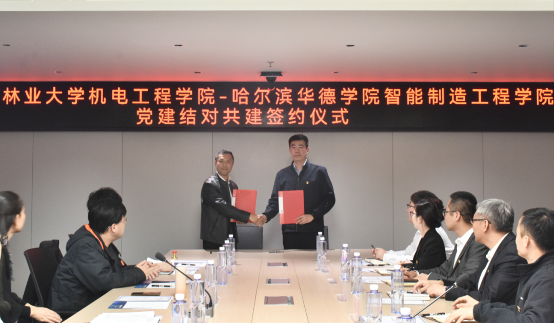 随后,我校智能制造工程学院党总支书记郝云松与东北林业大学机电工程学院党委书记王佳彤签署党建结对共建协议。