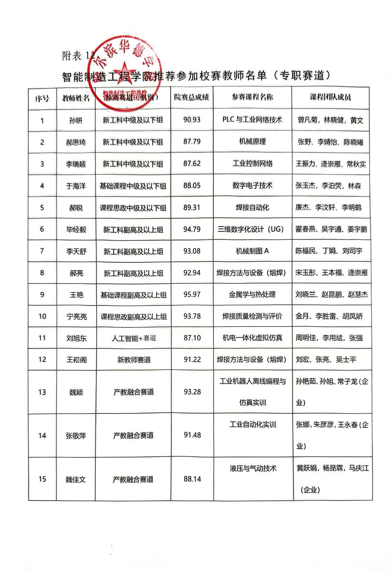 现将智能制造工程学院2025学年“精彩课堂”推荐参加校赛教师名单公示如下: