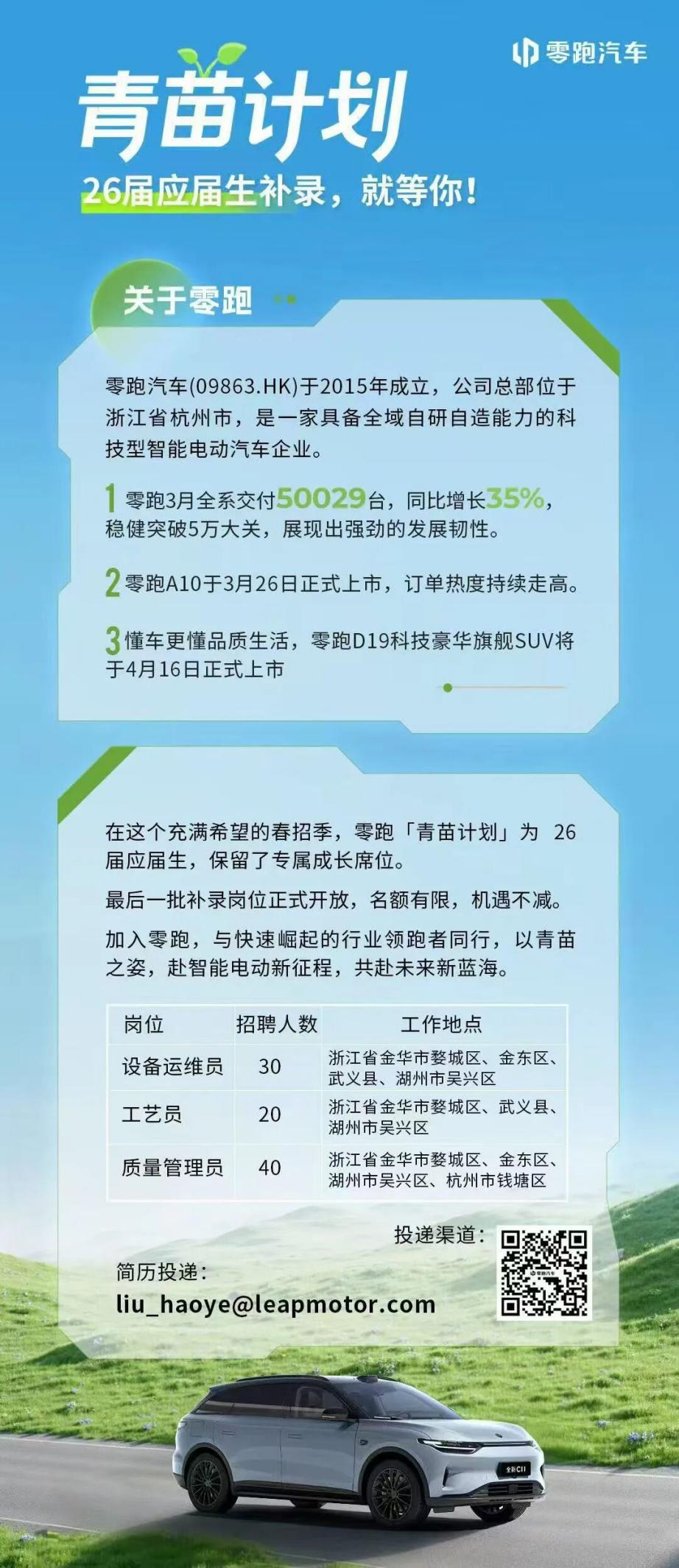 智能学子别错过!零跑汽车2026届应届生补录啦