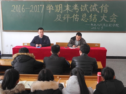 华德报讯(通讯员 李滨)12月7日,机电与汽车工程学院在第四教学楼401教室组织召开2016-2017学期末考试诚信大会,学院副院长付洪涛、团总支书记范雪阳出席,全体学生会成员参加会议。