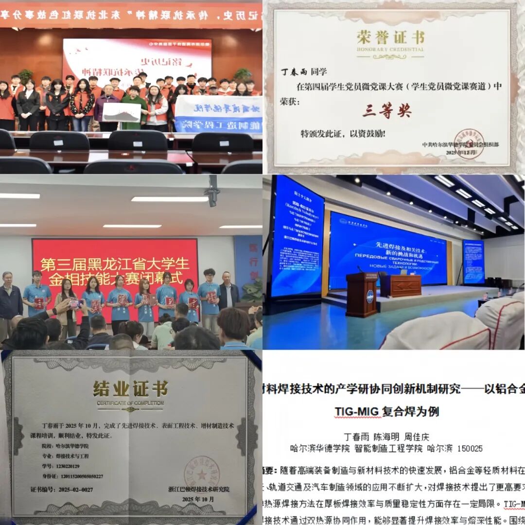 荣获国家奖学金,对于丁春雨而言,不仅是一份沉甸甸的荣誉,更是对本科阶段求学的肯定、深耕初心的见证。她表示,这份成绩的取得,离不开智能制造工程学院老师们的倾囊相授,从课堂理论的细致讲解,到实践操作的手把手指导,再到科研方向的全程护航,系里严谨的学风、严谨的态度,成就了如今的她。同时,校院两级学生会的工作经历,也让她在服务中学会担当,在协作中收获成长;而微党课大赛的历练,则让她进一步坚定了理想信念。作为焊接学子,她将以“焊铸匠心、砺技笃行”为新的起点,带着这份荣誉与责任,为智能制造与焊接行业发展贡献青春力量。