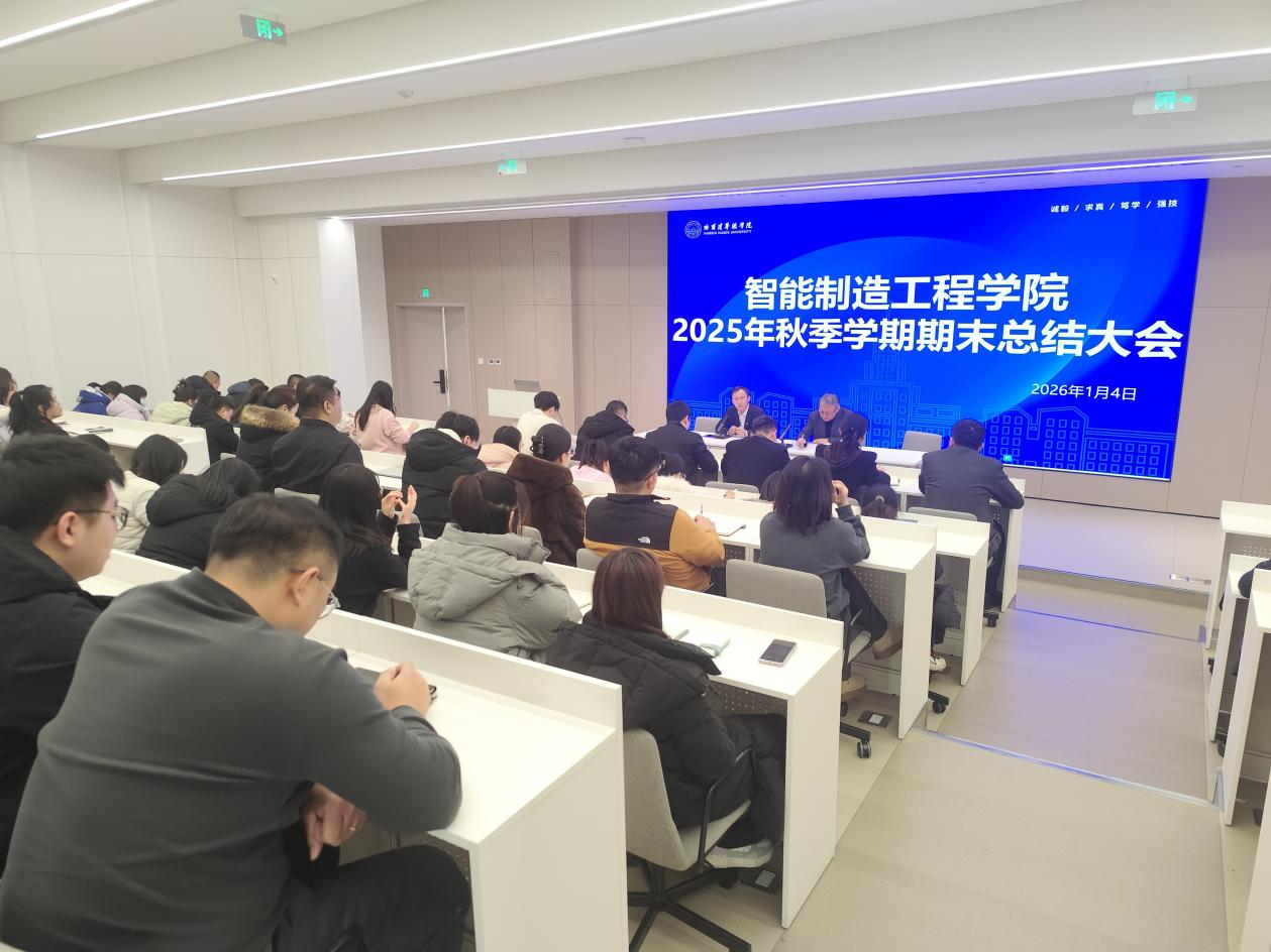 为系统梳理2025年工作成效、总结建设经验、明晰未来发展方向,同时激发全院教师教学热情、深化“精彩课堂”建设质量,2026年1月4日,智能制造工程学院在教三四楼报告厅召开2025年秋季学期期末总结大会暨“精彩课堂”院级竞赛表彰会。院长朱斌海、副院长王振力以及全体教职工出席参加本次会议,会议由副院长王振力主持。
