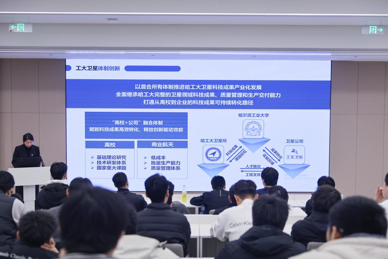 为深化学子行业前沿认知,搭建校园与名企沟通桥梁,引导学子树立科学择业观,哈尔滨华德学院智能制造工程学院持续深耕“辅导员讲名企”系列活动。3月11日,系列活动第四期在第三教学楼四楼报告厅开讲,辅导员夏靖秋老师担任主讲,聚焦国内商业航天优质企业——哈尔滨工大卫星技术有限公司,为学子解锁航天领域就业新赛道,点亮职业规划之路。本次活动以“筑梦航天,职引未来”为主题,夏靖秋老师从企业实力、发展机遇、岗位适配、校友榜样等维度,全方位解读哈工大卫星技术有限公司,让同学们近距离感受本土航天名企的发展魅力。