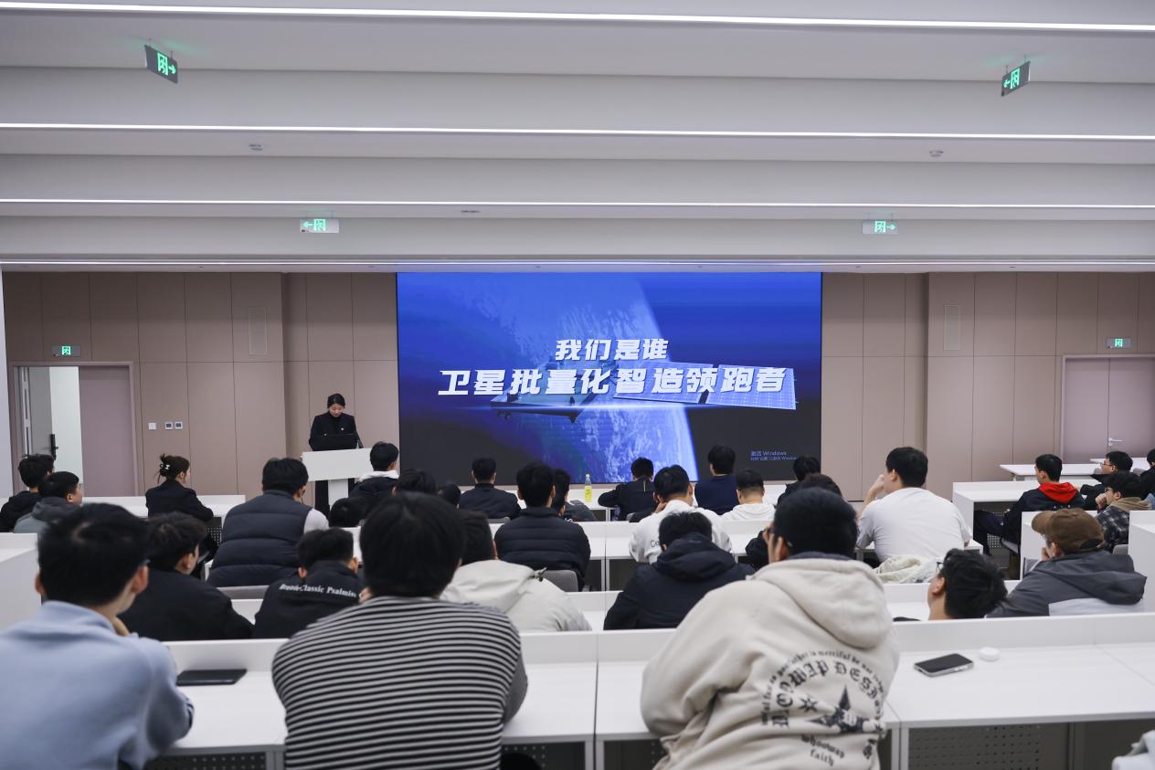 夏靖秋老师结合PPT与视频资料,带领同学们走进企业研发生产一线,解读其“敢于探索、勇于创新”的研发模式和严谨务实的工作作风,让大家深切感受顶尖航天企业的技术实力与行业担当。同时,老师分享了学院2025届优秀毕业生王增壮的就业经历,作为入职哈工大卫星的华德校友,他快速融入团队并登上央视新闻,成为学子们的优秀榜样。他介绍的企业内本研并肩作战的科研氛围,打破了同学们“航天遥不可及”的认知,点燃了大家投身航天事业的热情,他也期待更多学弟学妹加入,携手筑梦航天。结合学校侧重“应用型人才培养”的定位,夏靖秋老师将企业用人需求与学子学业规划紧密结合,对照装配工程师、试验工程师等核心招聘岗位,细致分析岗位所需的专业技能与综合素养,引导同学们思考“企业需要什么样的人才”“如何提升核心竞争力”。现场同学围绕航天精神时代价值、跨学科协作能力培养等问题热烈讨论,在交流中明晰了学习方向与努力目标。