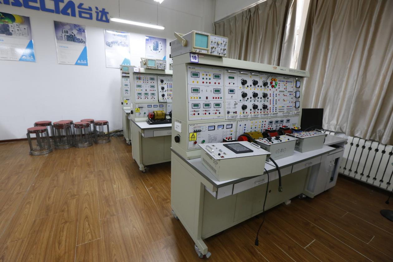 电气工程与自动化实训室是电气工程及其自动化、自动化等专业学生的实训场所,现拥有电气工程与自动化实训装置16套,一体化自动生产线系统实训装置1套,可完成电工技术、工厂电气控制、机床线路控制、可编程控制技术、变频调速技术等多门课程的实训。使学生掌握自动化控制设备安装调试、自动化控制设备整体系统设计等能力。